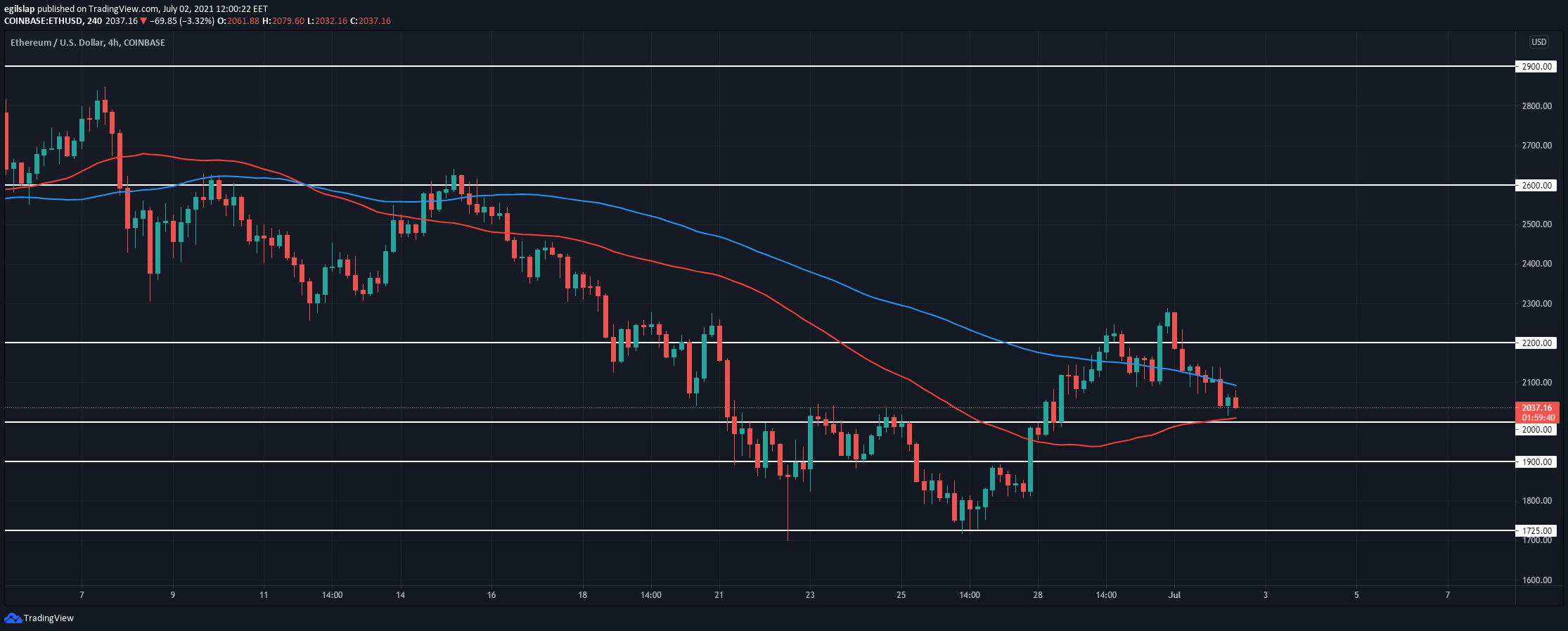 ETH/USD 4 saatlik grafik – ETH 2.000 dolarlık desteği test ediyor